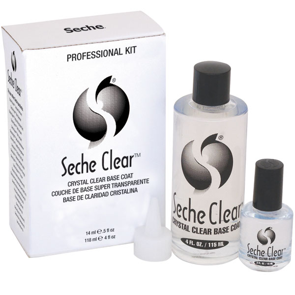 Seche seche clear™ crystal clear base coat used along with seche vite™ top coat, creates a manicure that will last and last. formaldehyde, toluene and pb free dries to a clear finish with long lasting shine. pro kit 4 oz. w/free 1/2 oz.